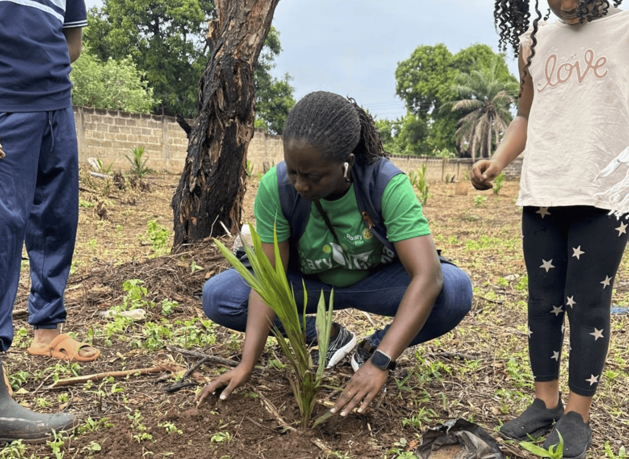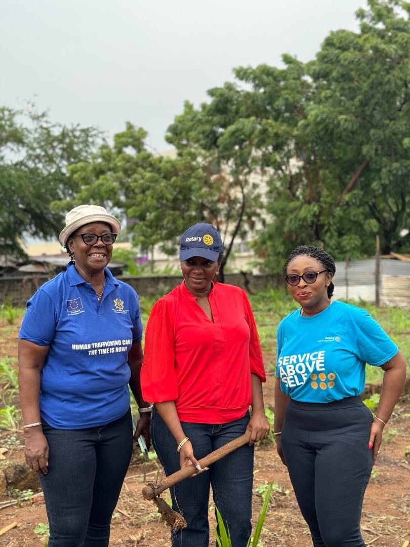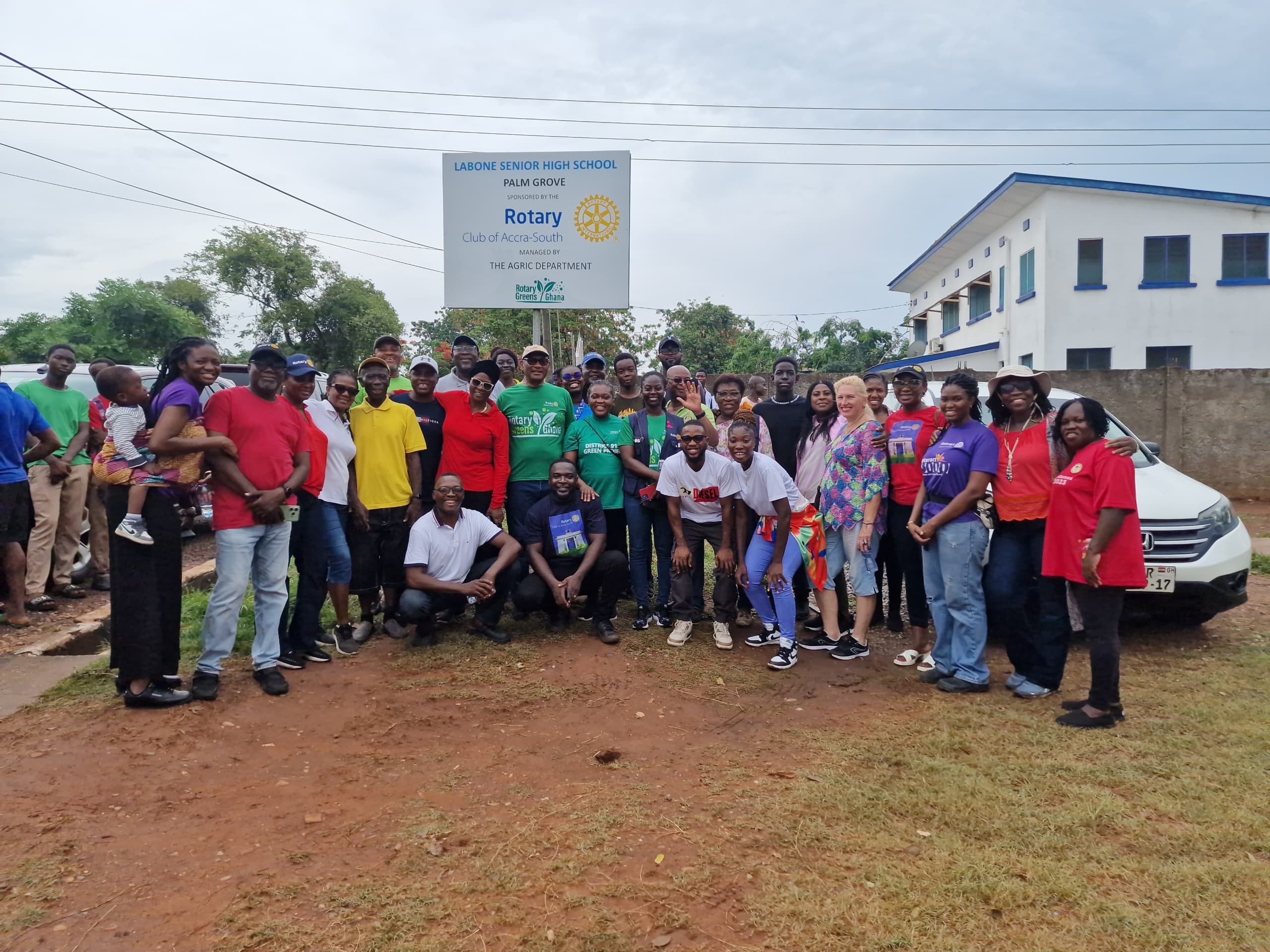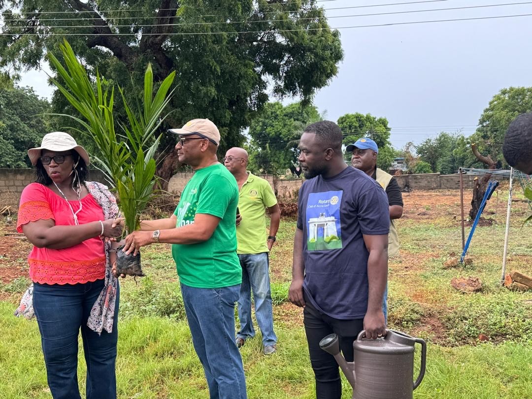 Planting 200 palm seedlings to make a Palm Groove at Labone SHS. The fruits from the trees will be used to support the school canteen. Some would also be sold to raise money for the school. The tree planting exercise was used as a fundraising drive. The proceeds will be used to purchase medical consumables for the James Camp Infirmary.